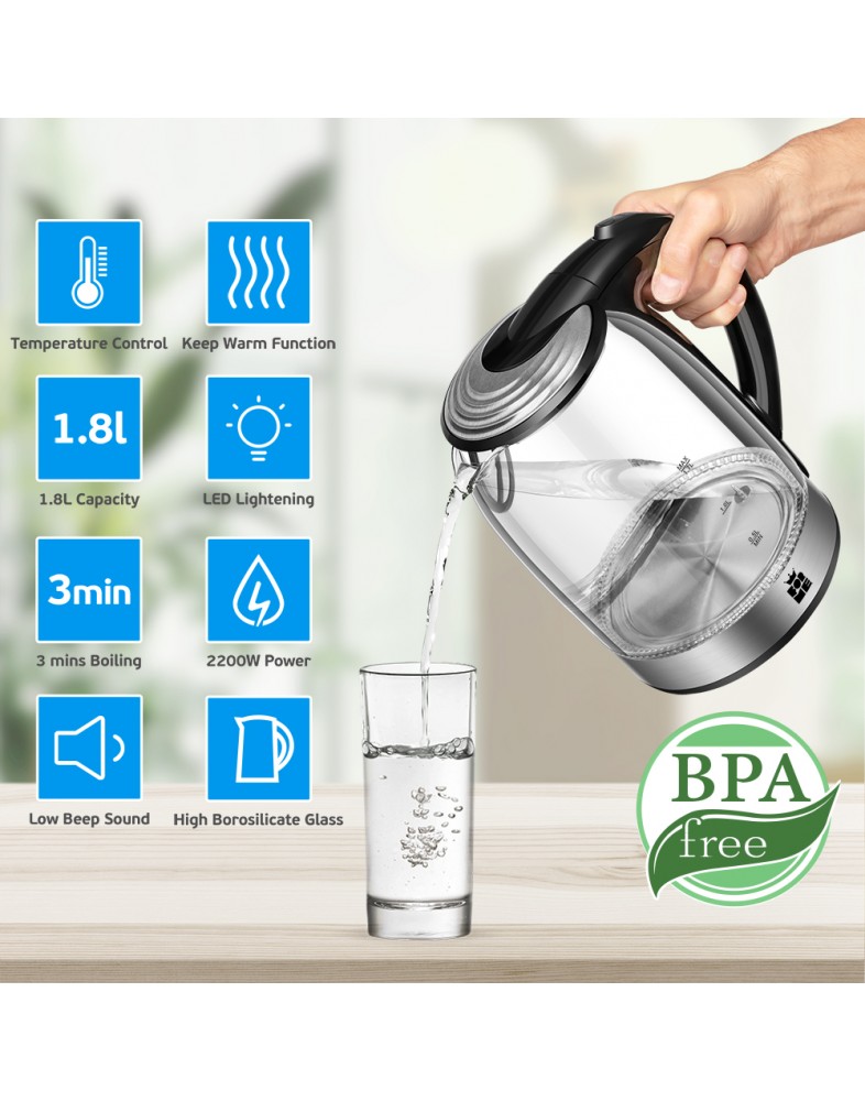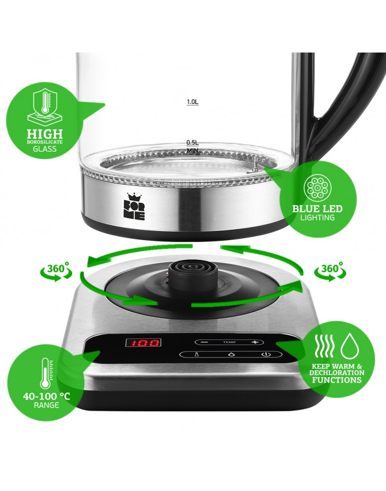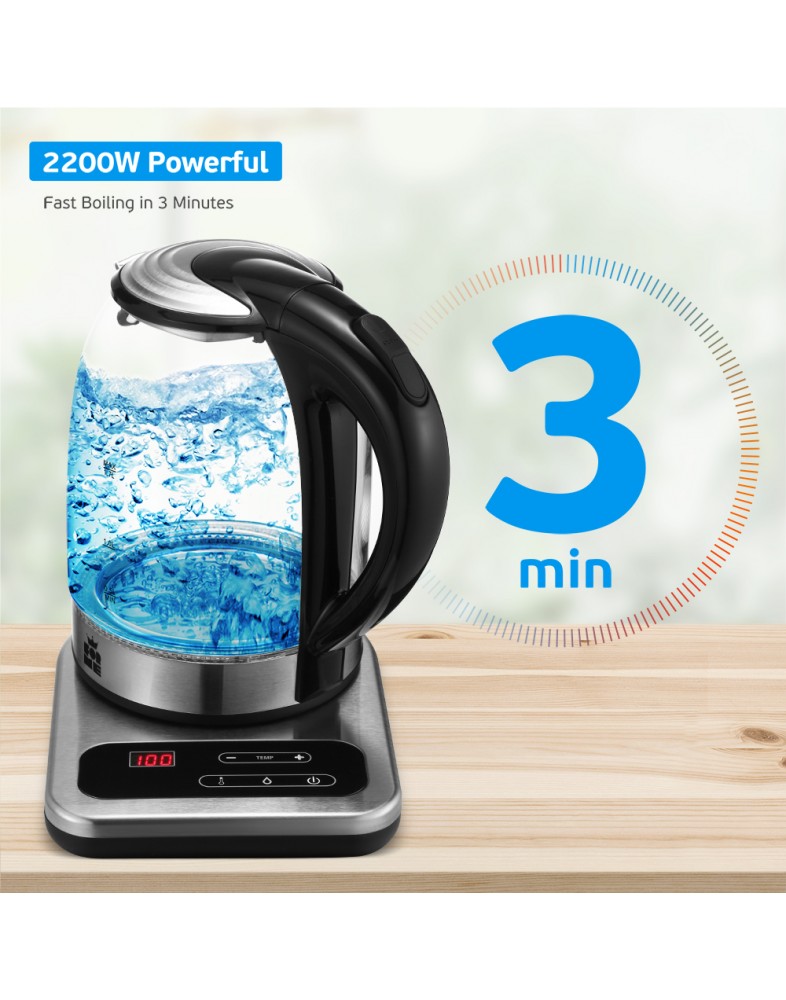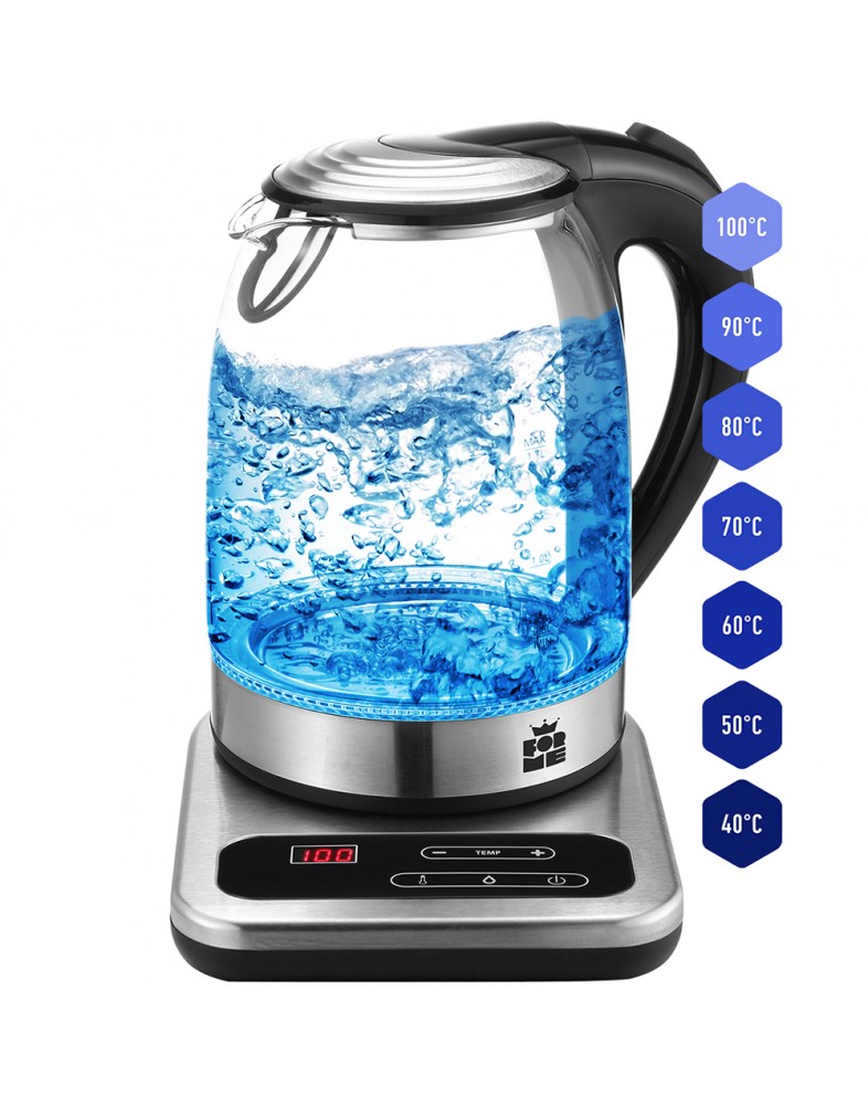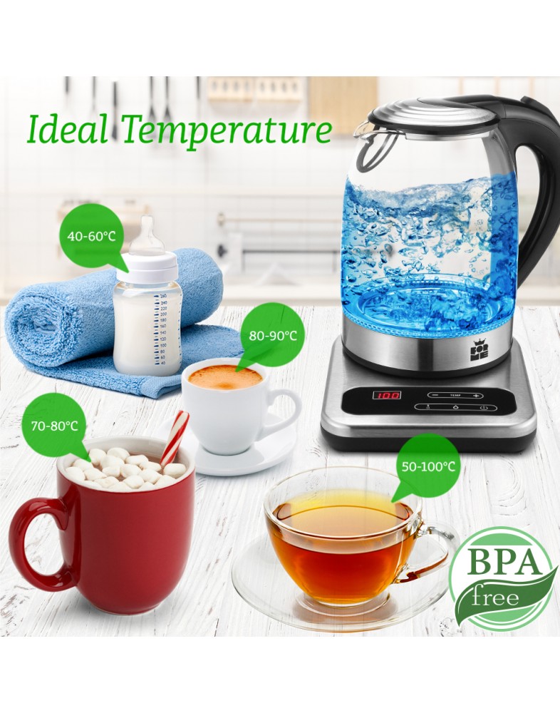 Stylish and easy to use multi-temperature Glass kettle offers you multiple brewing options at the touch of a button. Choose between 40°C and 100°C, for the perfect cup of tea or coffee.